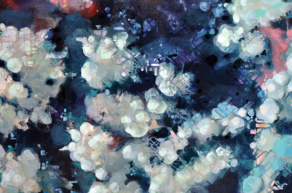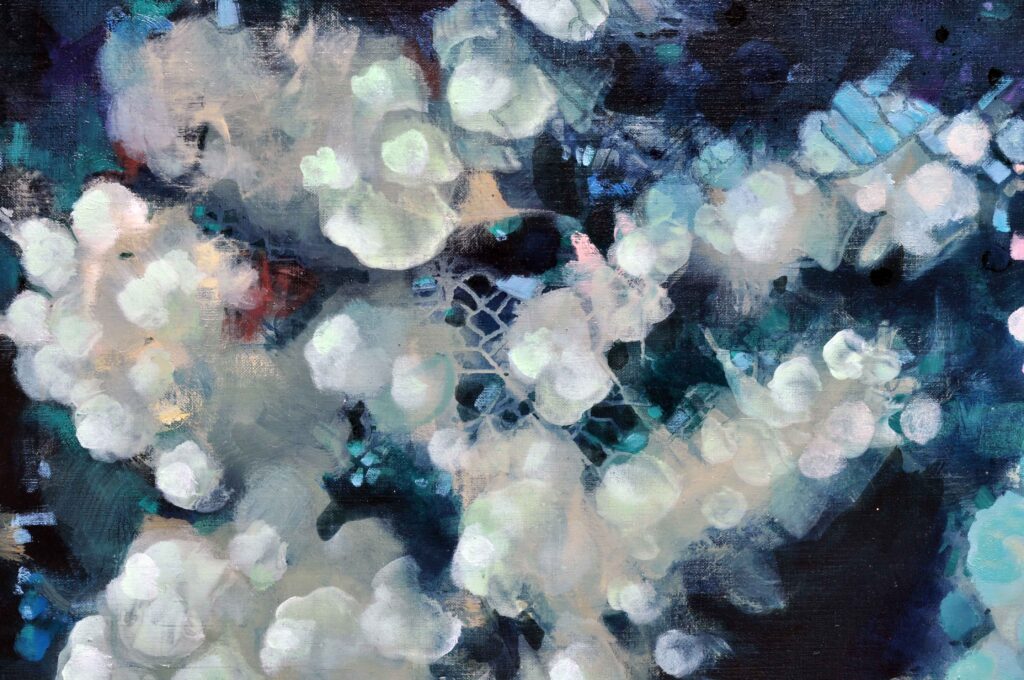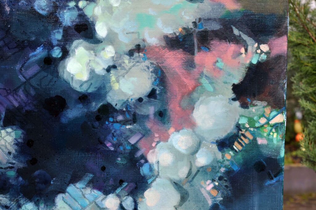 “L’Appel des Cimes” is a large-scale work (140 x 140 cm) that plunges the viewer into the heart of a mystical forest, where the trees seem to reach for the sky as if answering an invisible call. This large-scale oil on canvas captures the very essence of nature’s verticality and transcendence.